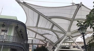 ————罩棚应采用安全可靠的钢结构形式,优先选用轻钢结构;在台风频发区域也可选用钢筋混凝土结构。